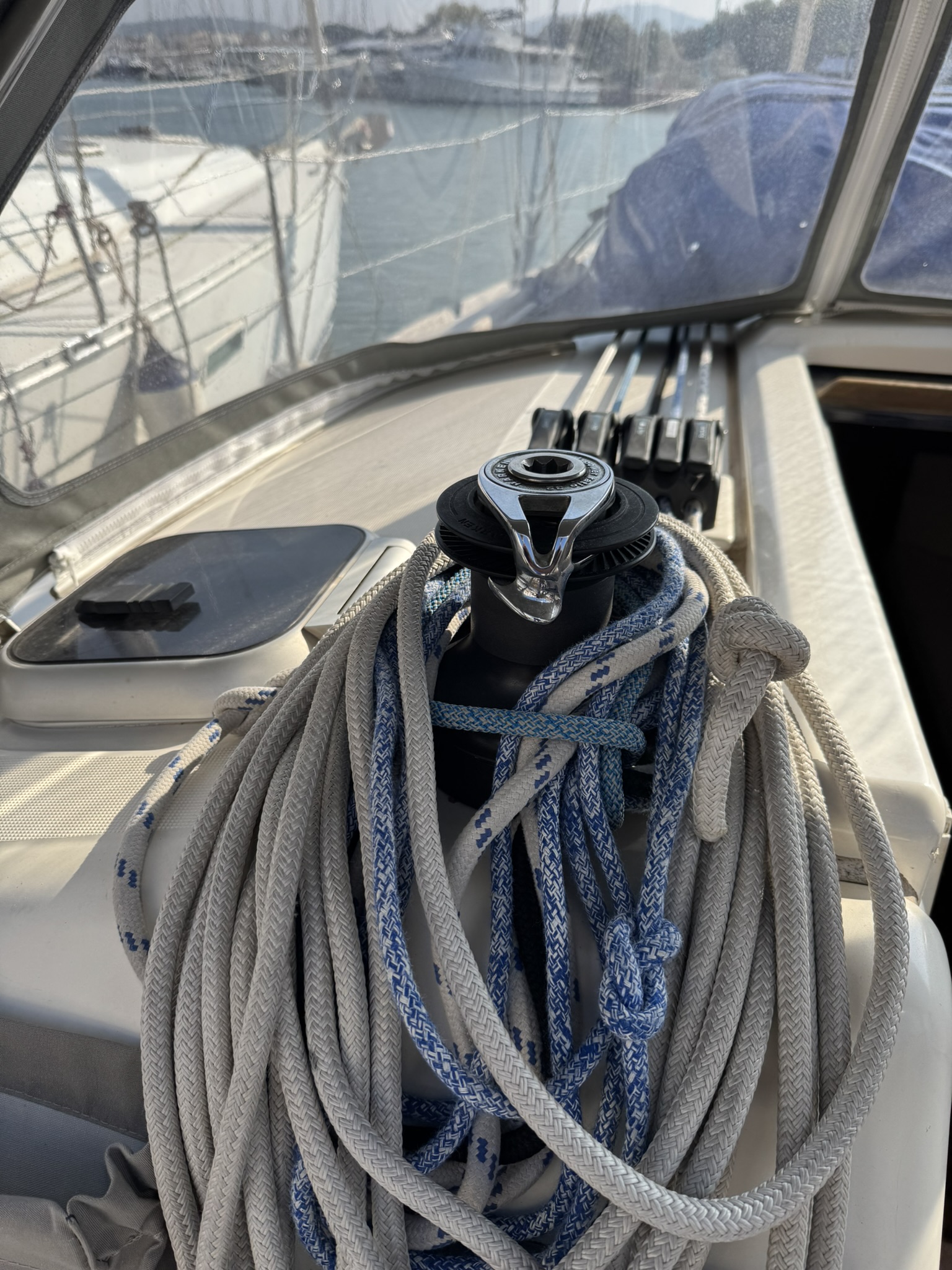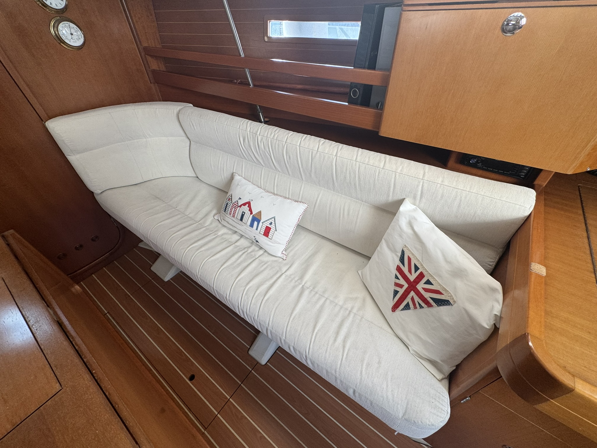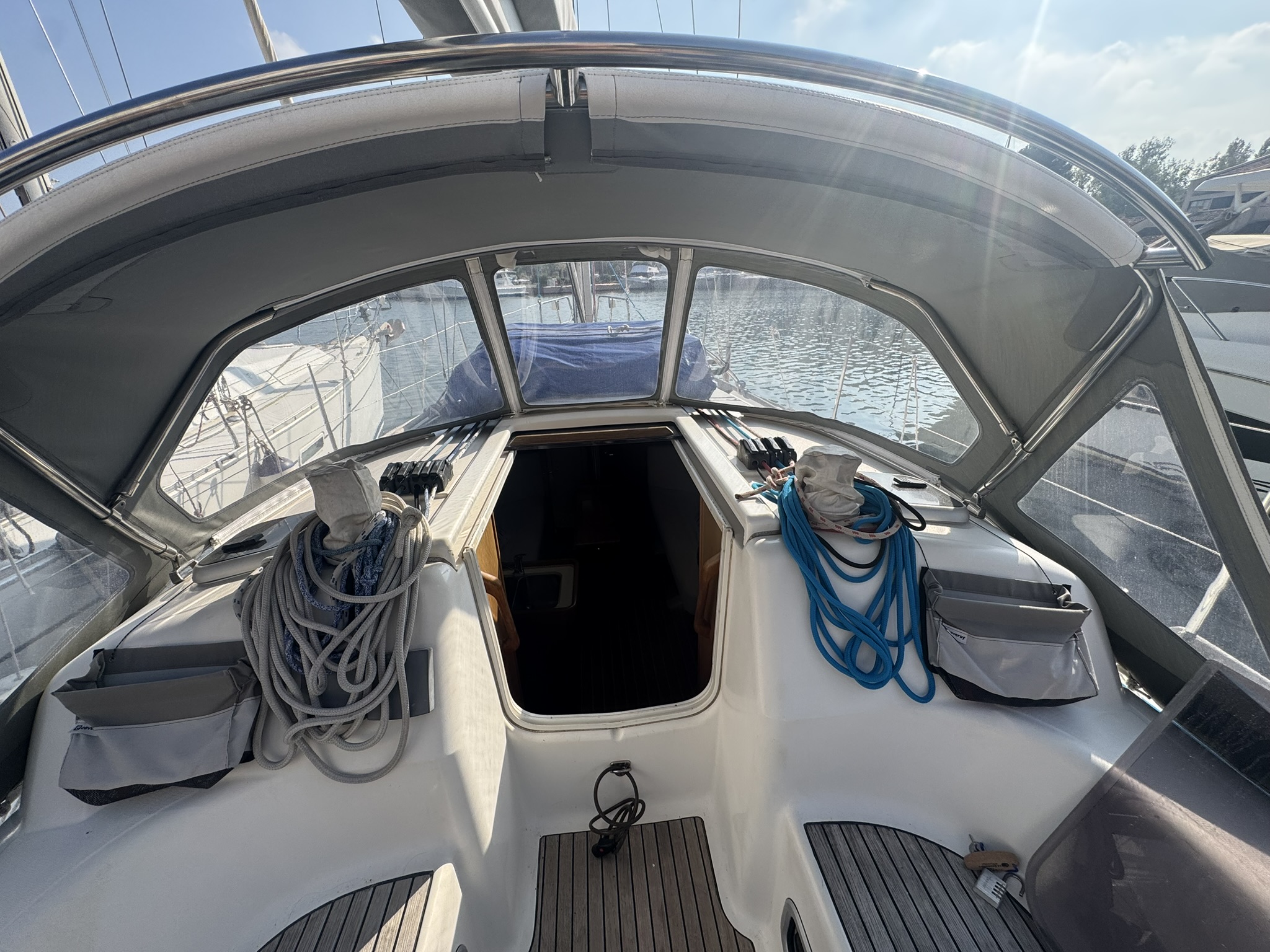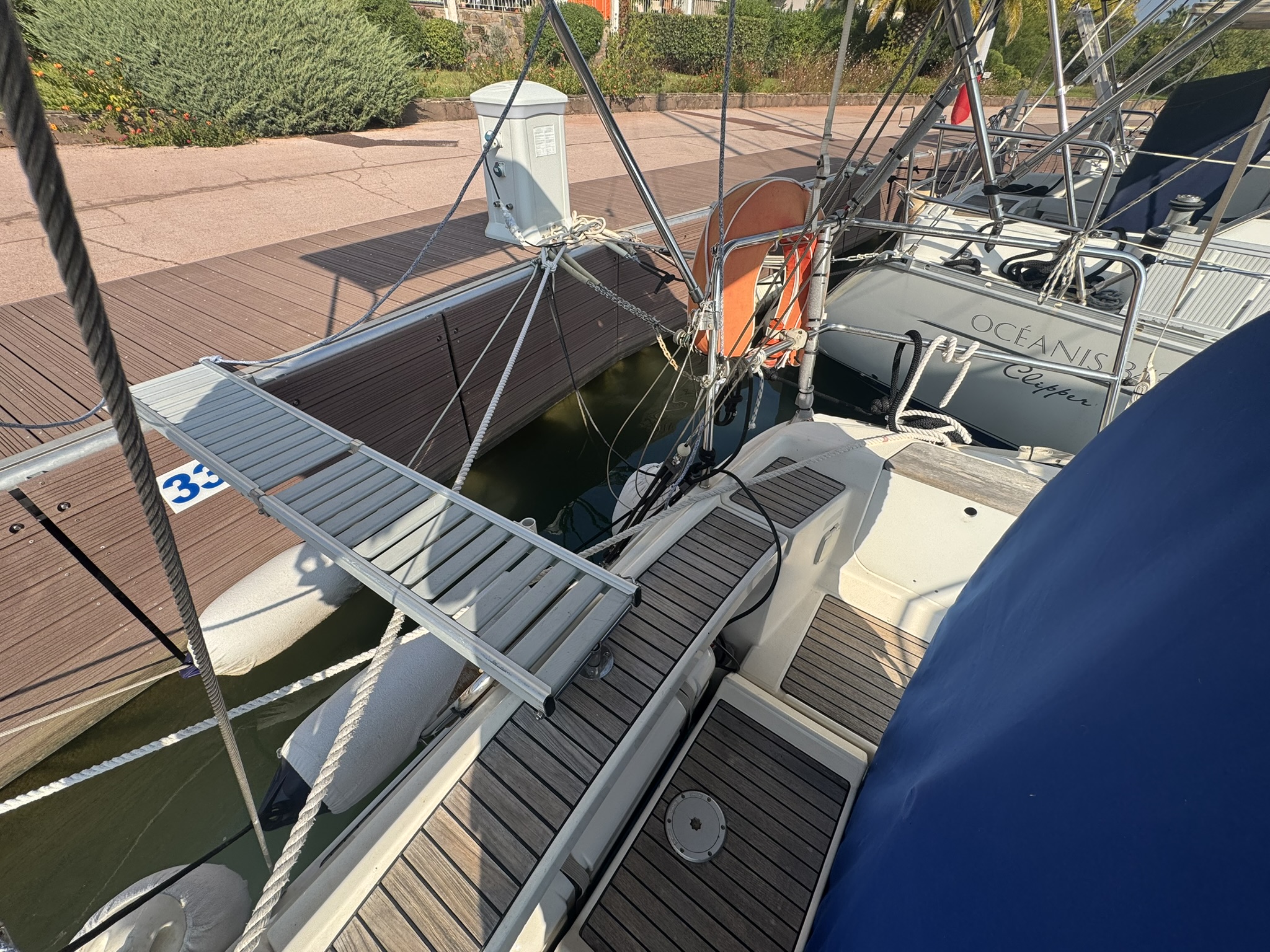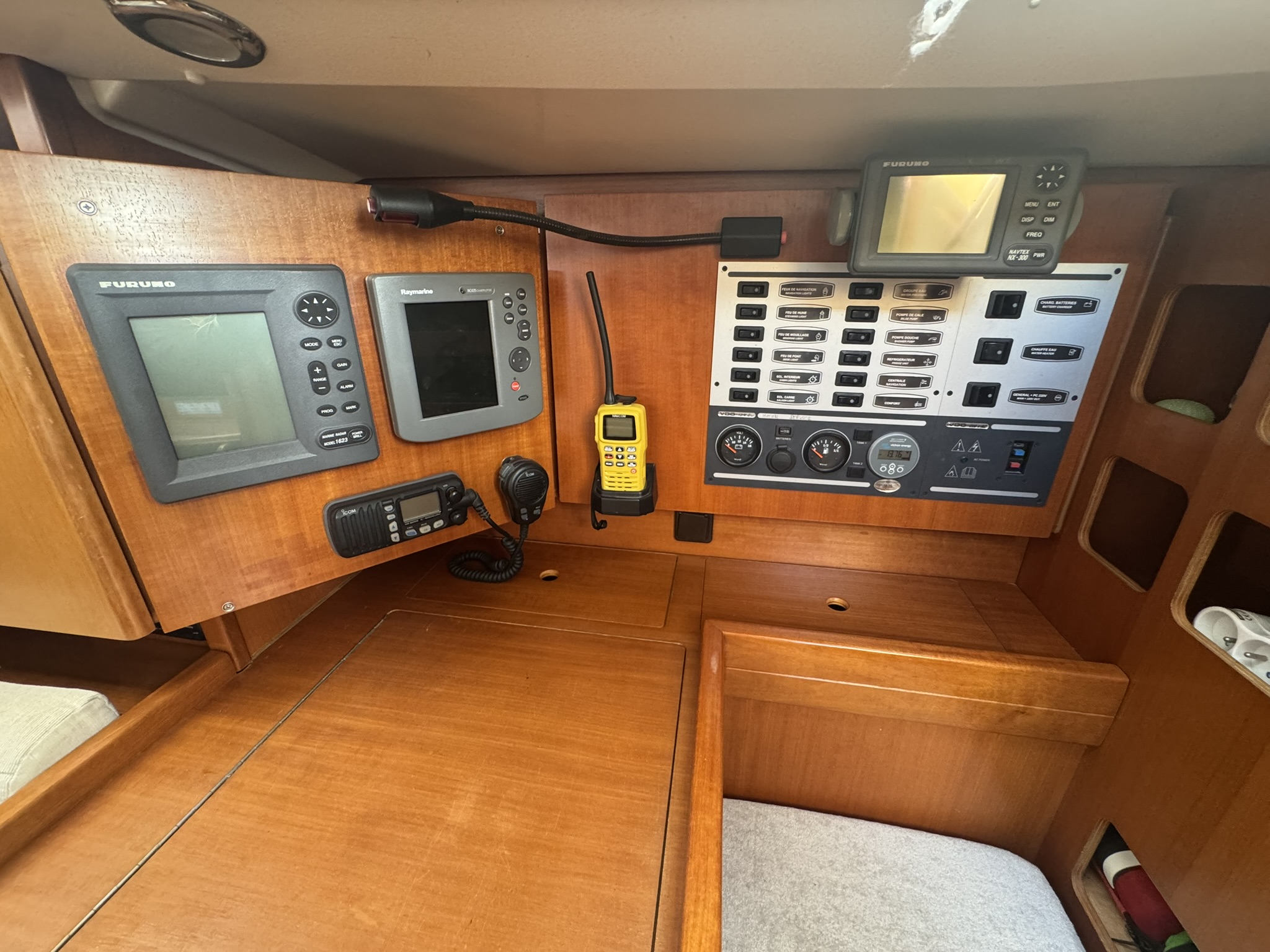Moteur 29 cv, bien équipé, portique avec panneaux solaires , Capote , Bimini , Taud de soleil et Lazy Bag neuf (2025) , passerelle , étai largable , tangon , Electronique complète, 4 winchs Harken , Quille en plomb (1.92 m) ,cuisine entièrement équipé , annexe et HB, frigo et coude échappement récent , confortable, le plan de pont dégagé permet une grande facilité de manœuvre et s’adapte à toutes les navigations .